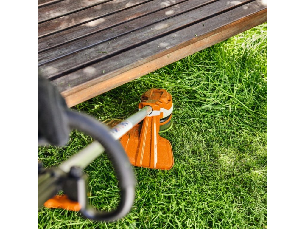 Akumulátorový vyžínač STIHL FSA 70 R je praktické a výkonné zařízení ze systému STIHL AK, ideální pro běžné zahradní práce, jako je sečení středně vysoké trávy, úprava okrajů trávníků nebo začišťovací práce. Díky systému Rapid Click lze žací hlavu rychle a snadno sejmutím tlačítka odmontovat, zatímco systém Advanced EasySpool umožňuje pohodlné navíjení nové žací struny. Bezkartáčový EC motor s plynulou regulací otáček nabízí dva režimy výkonu: úroveň 1 (ECO) pro úsporné sečení a úroveň 2 pro plný výkon při husté trávě. Inteligentní elektronika zajišťuje konstantní výkon bez ohledu na stav nabití baterie a rekuperace energie při brzdění prodlužuje životnost akumulátoru.