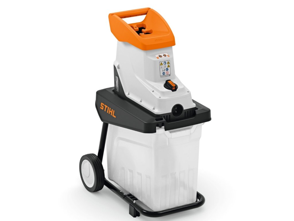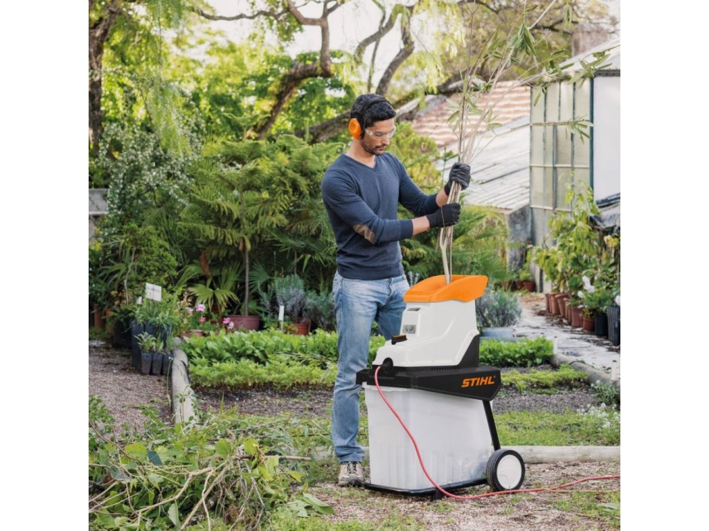 Tichý elektrický drtič STIHL GHE 135 L pro efektivní zpracování tvrdých větví a výrobu cenného kompostu.