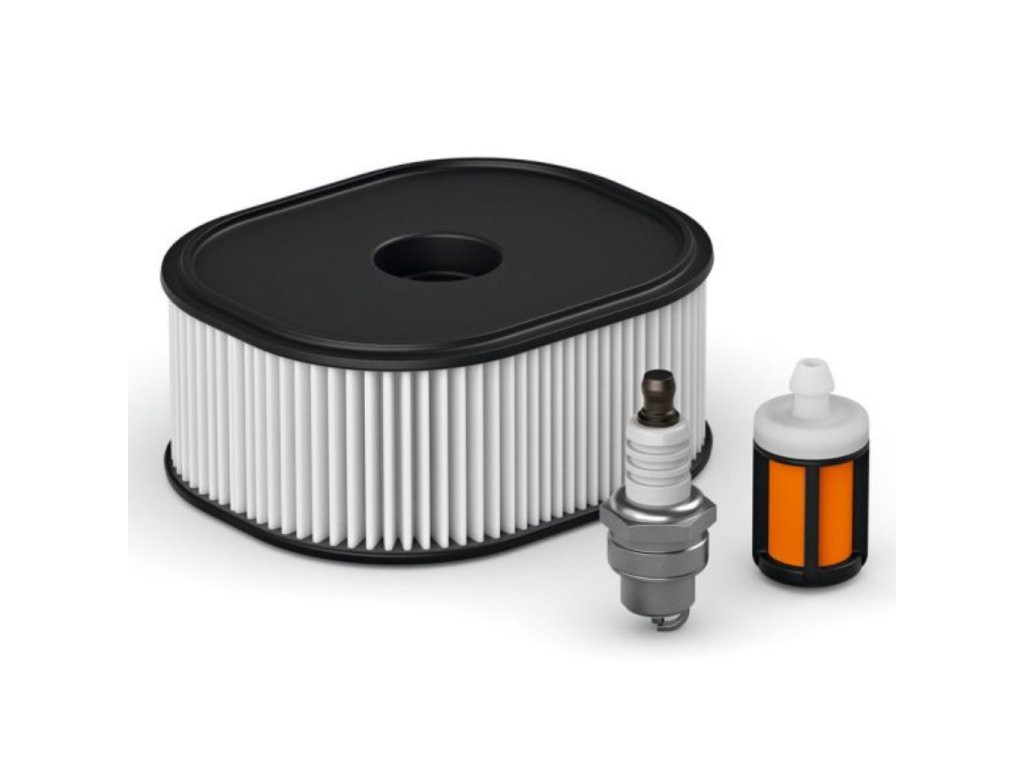 Součástí sady je vzduchový filtr HD2, zapalovací svíčka a palivový filtr.
