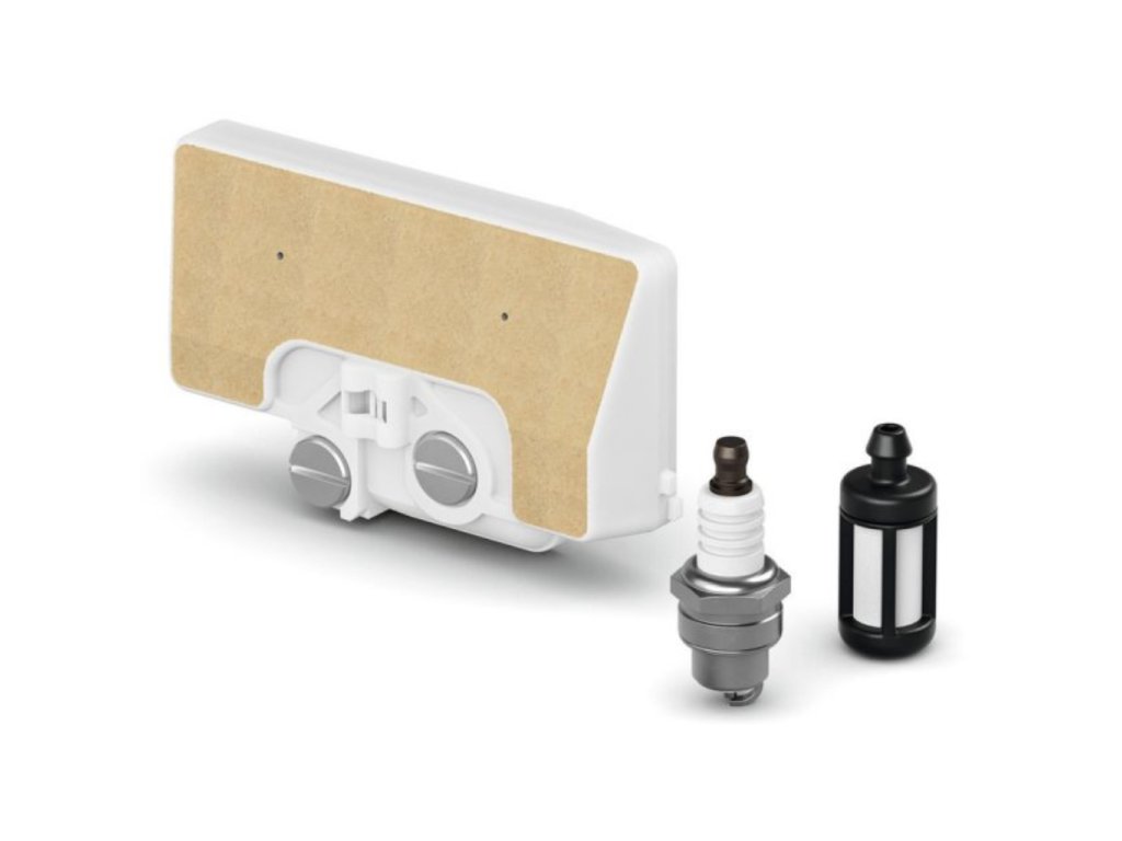 Součástí sady je fleecový vzduchový filtr, zapalovací svíčka a palivový filtr.