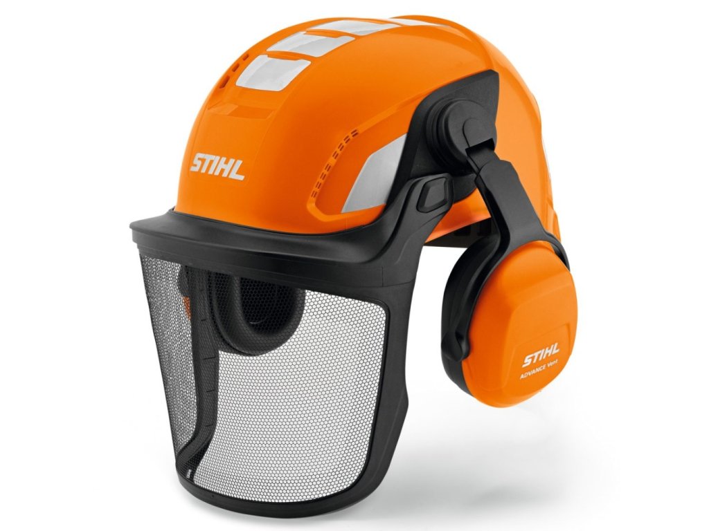 Profesionální lesnická přilbová sada STIHL ADVANCE Vent s kovovým štítem, ventilací a sluchovou ochranou pro maximální bezpečí.