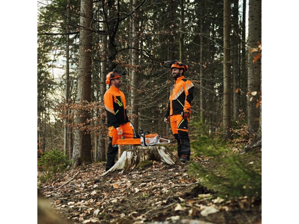 Robustní a pohodlná bunda STIHL DYNAMIC DuroTEC poskytuje vodoodpudivou a prodyšnou ochranu pro práci v lese i venku.